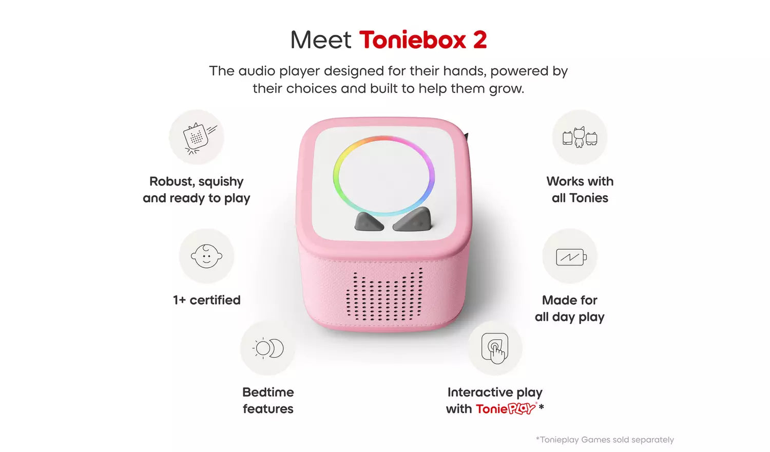 Tonies | Toniebox 2 Cloud - Pink Starter Set with Creative Tonie Rubie UK